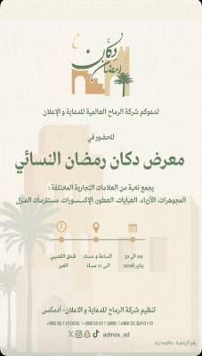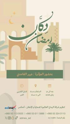 تستعد شركة أدامكس لإطلاق النسخة الرابعة من معرض “دكان” رمضان النسائي والذي سيقام لمده ثلاث أيام من تاريخ 29 إلى 31يناير في فندق القصيبي بالخبر.